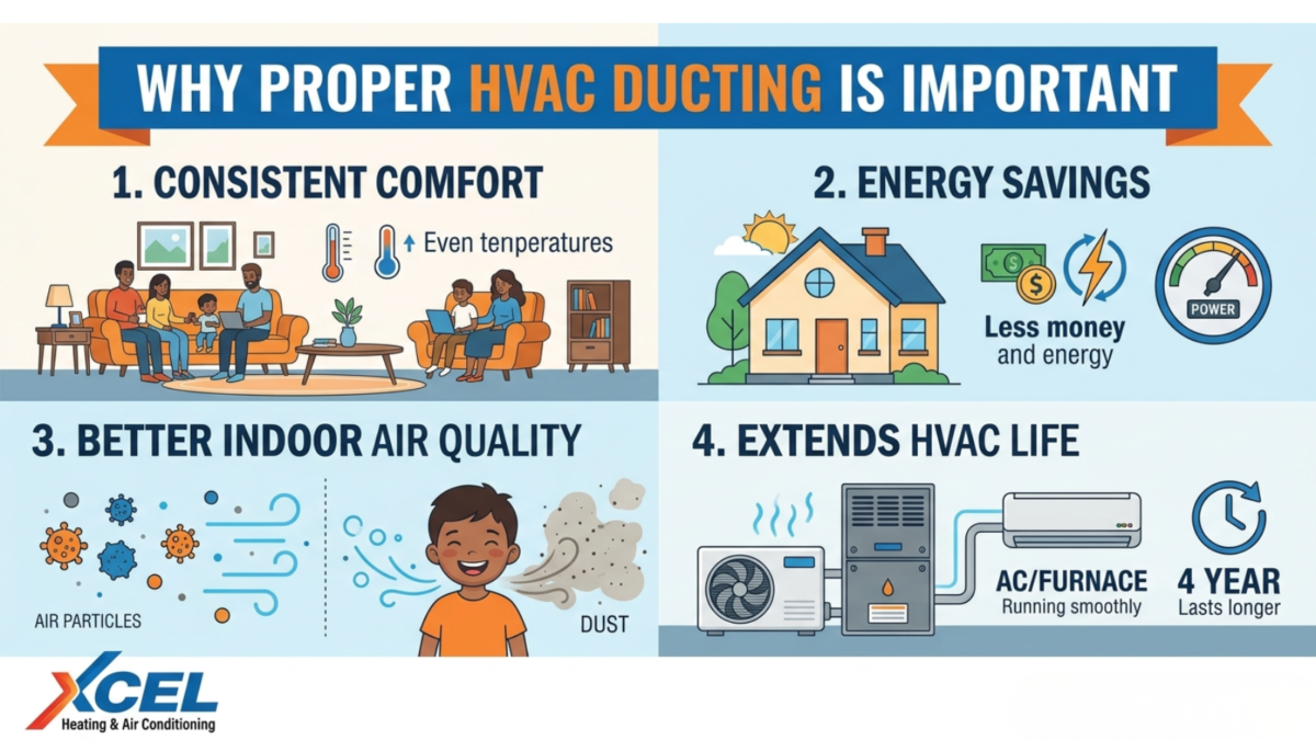 Your HVAC system cannot perform efficiently without properly functioning ducts. Whether you need ductwork repair, air duct replacement, or professional dryer duct installation near me, XCEL Heating & Air Conditioning is ready to help.
